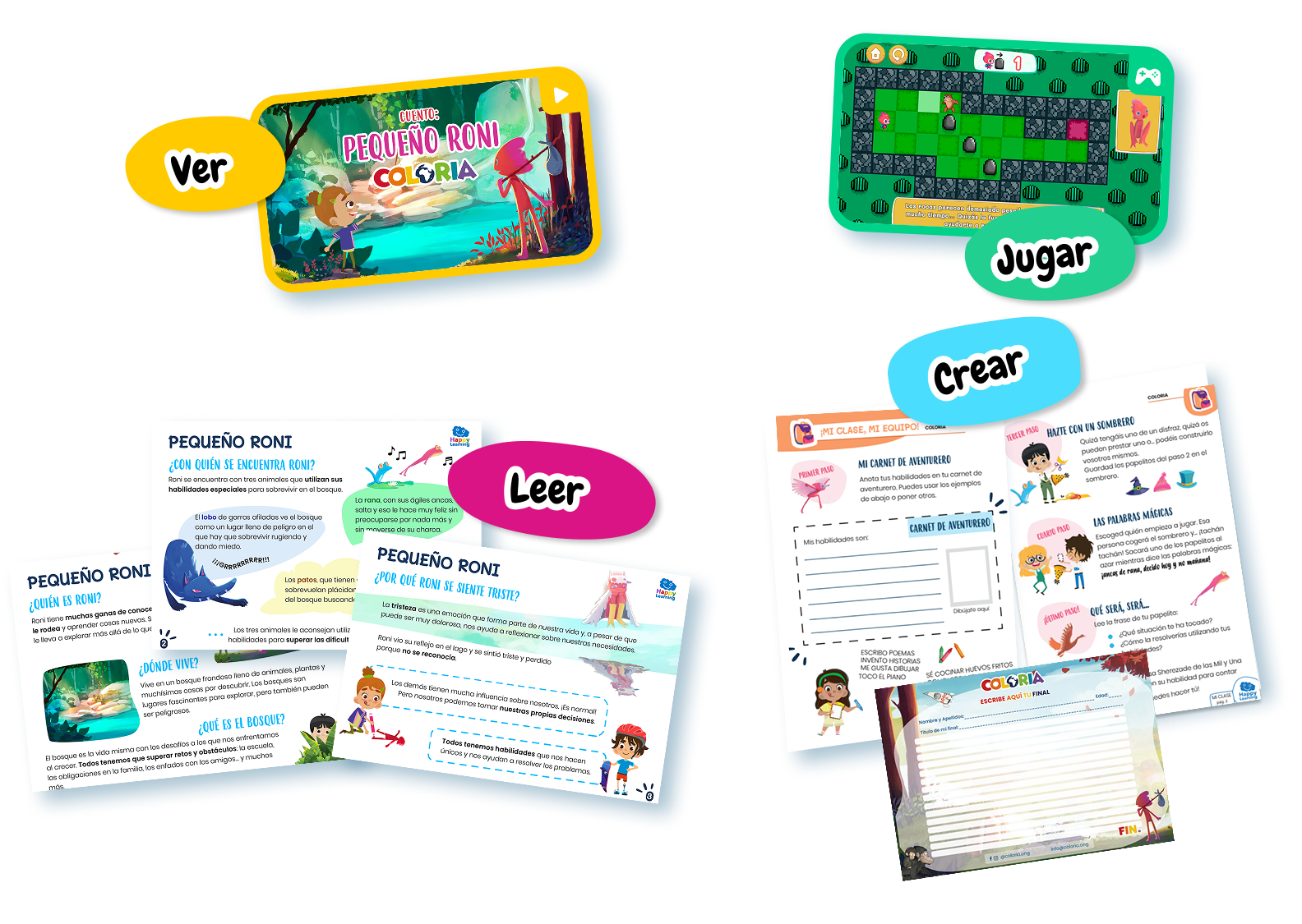 Desde que Coloria nació hace más de cinco años, hemos tenido claro que el trabajo en red y las alianzas son esenciales para llevar nuestra misión al mayor número de niños. Happy Learning comparte los mismos valores y filosofía que nosotros, por lo que nos hace mucha ilusión compartir esta alianza, que supone la primera vez que uno de nuestros cuentos sin final estará publicado en otra plataforma.
