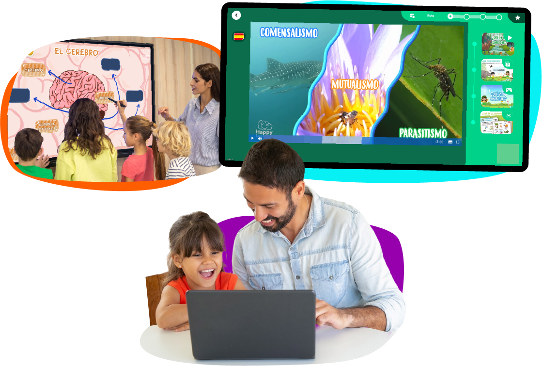 Happy Learning es una plataforma de contenidos educativos para niños de Primaria que utilizan miles de profesores y familias de todo el mundo. Sus lecciones combinan vídeos, lectura, juegos interactivos, y actividades para hacer lejos de las pantallas, trabajando tanto la dimensión académica como la humana. Con Happy Learning el aprendizaje es una aventura en la que se adquieren conocimientos, competencias y valores.